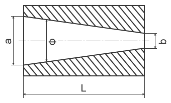 使用直径相对于距离呈线性变化的锥体(线性锥体)。侧面角度固定,锥体程度用锥角(角度)或锥度比表示。