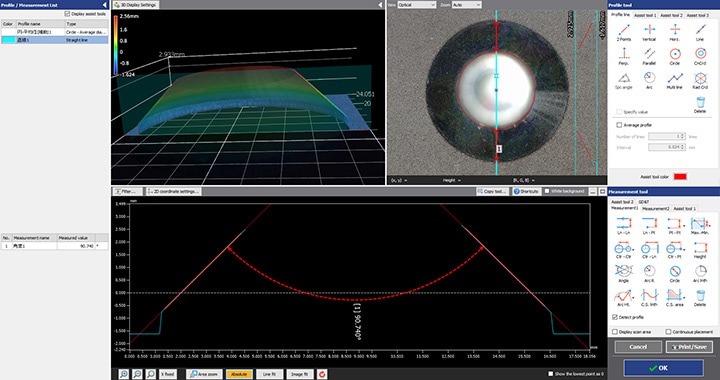 此外,还可使用事先注册测量项目的分析模板分析工件形状,因此可迅速完成此前耗费时间或难以完成的测量。