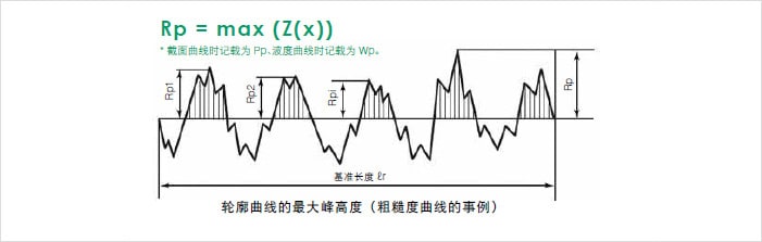 最大峰高度表示在基准长度上的轮廓曲线中,最高峰的高度。