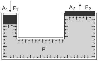 当对密封容器中静止流体的部分油液施加压力时,则不管容器形状如何,流体接触的各个面都会在垂直方向上承受相同的压力。这叫作“帕斯卡定律”。利用该原理实现用油液增大作用力的装置就是油压装置。