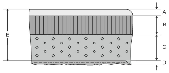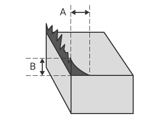 毛刺在金属材料的冲压加工中也被称作毛边,尺寸用毛边根部厚度(图中的A)和毛边高度(图中的B)来表示。