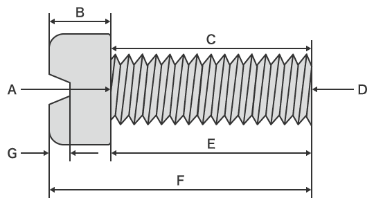 外螺纹的长度一般被称为“公称长度”,指螺脖下区域长度(图中的E)。但是,该定义因螺丝种类和头部形状而不同。例如,如果是接合时头部不会突出的埋头螺丝,全长(图中的F)即为公称长度。