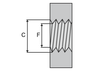 - 底径 外螺纹/内螺纹的谷底间直径。
