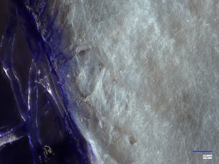 通过深度合成功能,可对有纵深的纤维进行对焦拍摄。