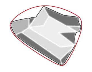 假设在颗粒轮廓周围箍上橡皮筋,“包络周长”可比作此时处于伸长状态橡皮筋的长度,可用它来计算包络度。这也被称为颗粒周长(端面接触)。