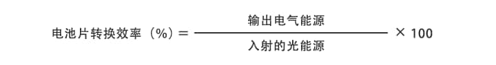 电池片是构成太阳能电池模块的最小单位构成部件。电池片转换效率是表示每块太阳能电池片转换效率的指标。电池片转换效率由以下公式计算。