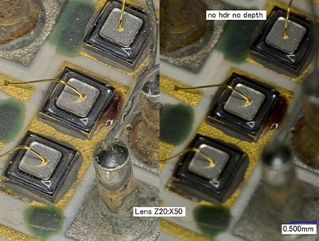 部分显微系统无法对模具上立体连接的各引线接合进行全幅对焦,因光泽产生的光晕等也会造成不利影响,很难拍摄到清晰的图像。