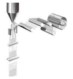 填充药剂时,药剂会附着在热封位置,若在该状态下进行热封,药剂会被夹入熔接部分,导致无法密封。