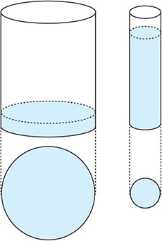 当相同量的水装入底部面积小的容器时,水位立即上升,但装入底部面积大的容器时,水位则较少上升。换言之,若将带电体视为蓄积电荷的容器,静电容量即表示容器的大小(容量)。