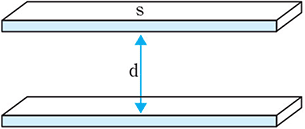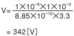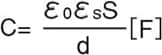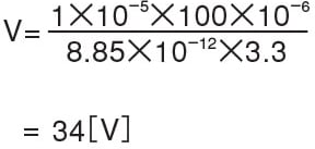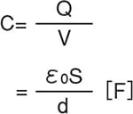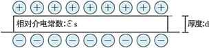 另外,导体板间存在绝缘体时,(绝缘体的相对介电常数)静电容量为以下公式所示。