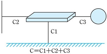 如图所示,多个导体接近1个导体并接地时,各个导体的静电容量之和即为该物体的静电容量。
