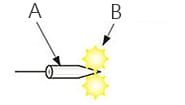 由接地端供应的电子从电极针顶端喷出