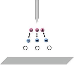 - 由电极针交替释放正/负离子,离子平衡性较好。但是,安装距离(与对象物的距离)越远,正负离子越容易像磁铁一样相互吸引结合,导致离子被消除,造成离子平衡恶化。