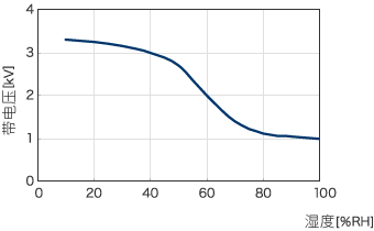 右图为湿度升高时,静电被自然释放的情形。通常认为,相对湿度高于65%时不易产生静电,即使产生也能自然释放,因此该值被作为湿度管理的基准。
