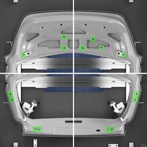 - 在汽车车身的焊接工序中,多点同时检测螺母的焊接数量是否正确。