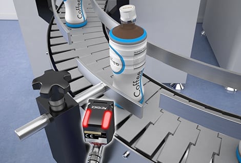 即使传送带的振动导致工件摇晃,IV2 系列也能凭借位置修正功能追踪工件的动作,实施检测。