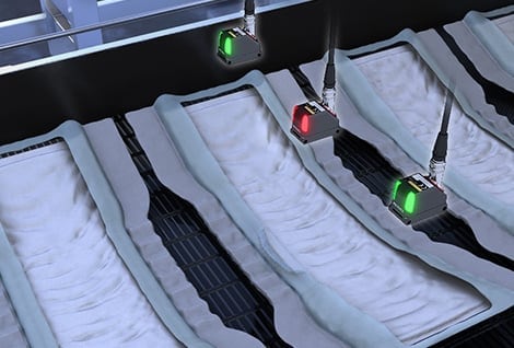 检测在传送带上输送的尿布侧面护翼是否发生翻卷。
