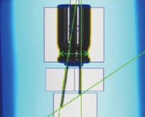 除了电容器主体的直径及长度外,还能够测量变细部分的最小直径、引线长度及弯曲等,分段检测各部分的边缘位置。可以测量各部位的正确尺寸。