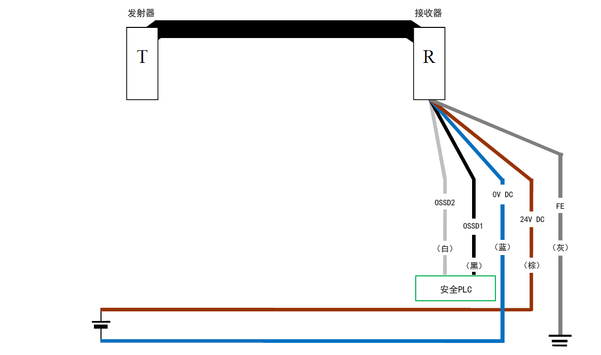 - 请将安全PLC的0 V与GL-R的0 V相连接。