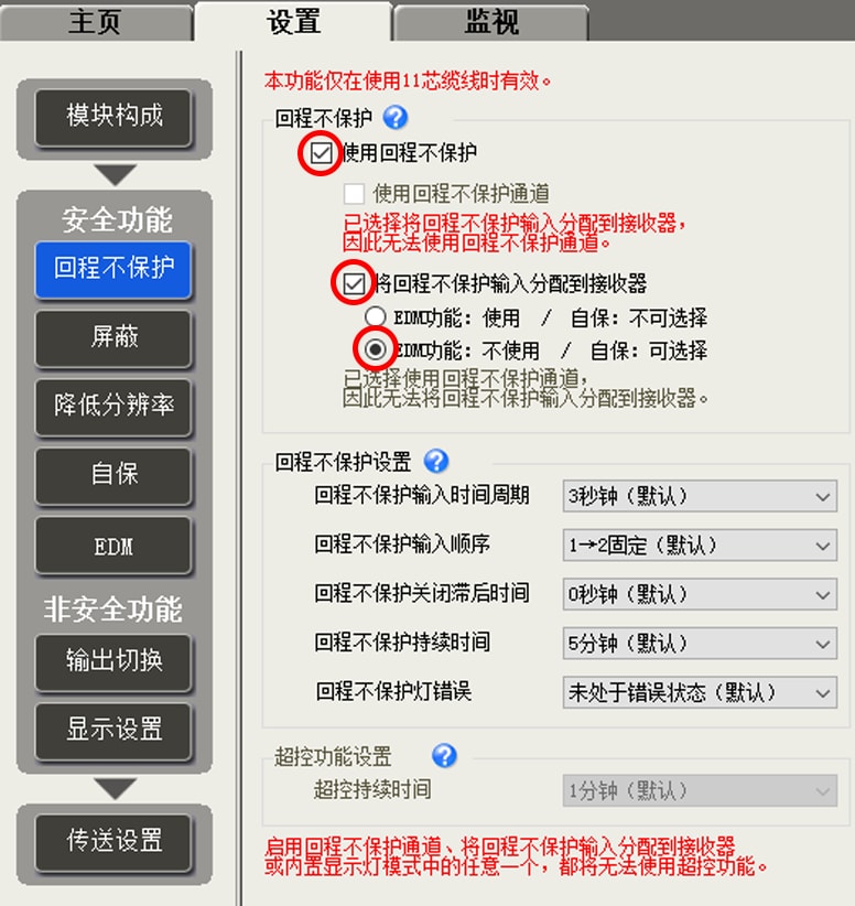 | 回程不保护 | 使用 |