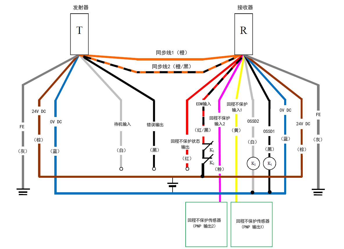 1. NPN 配线系统:有线同步(发射器7芯、接收器11芯)