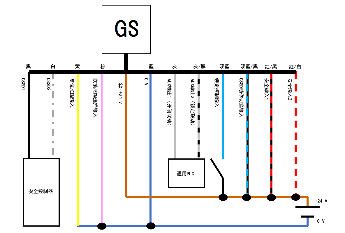 - 必需是指使OSSD正常变为ON/OFF所需的配线。