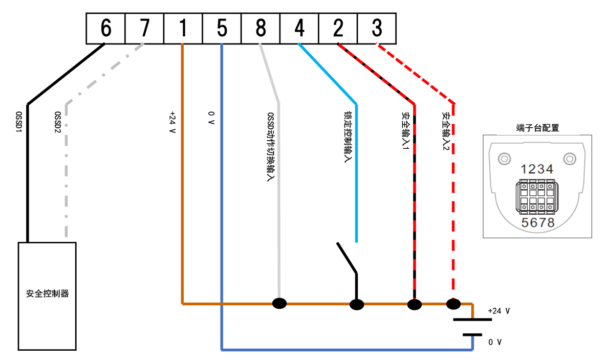 - 必需是指使OSSD正常变为ON/OFF所需的配线。